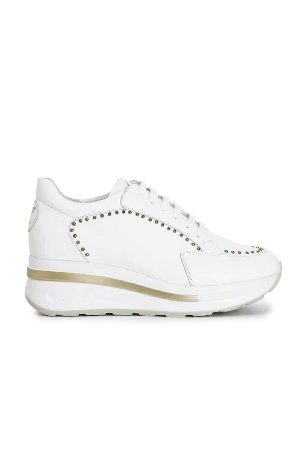 Sneakers in pelle caratterizzate da un motivo di borchie laterali. suola con zeppa bicolor di 40mm con logo embossed.