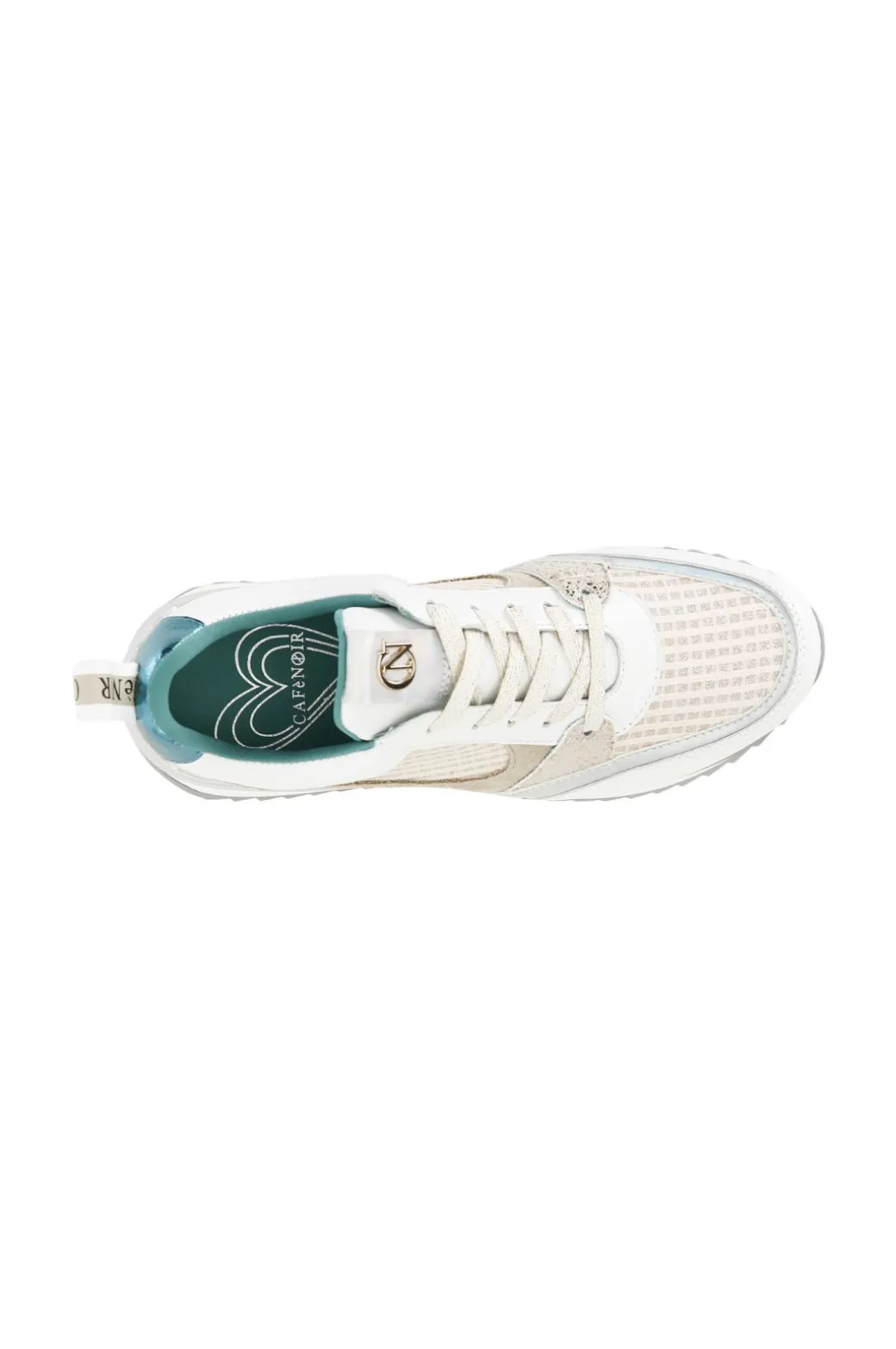 Sneakers allacciate con tessuto glitter suola running con inserto cromatico in linea con il colore della tomaia.