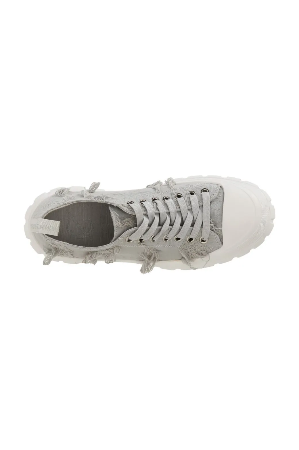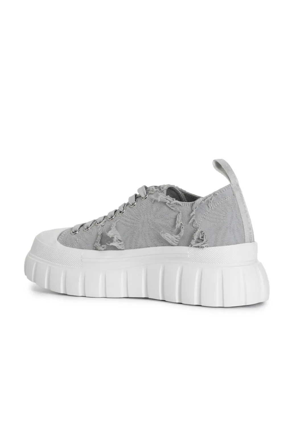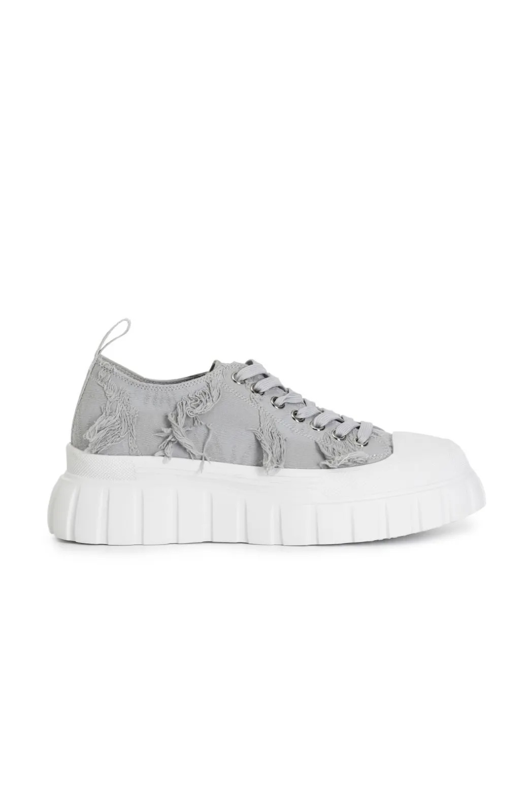 Sneakers allacciate in tessuto sfrangiato. punta in gomma. chiusura con lacci in tono alla calzatura. suola rialzata 55mm decorata da un pattern rigato.