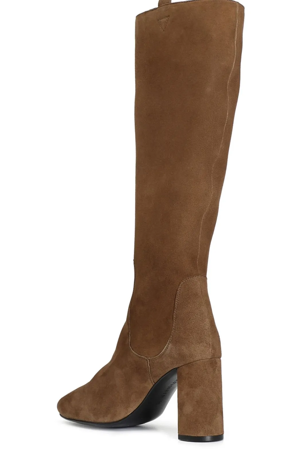 Stivale in camoscio. modello iconico dalla forma leggermente arrotondata per uno stile innovativo e raffinato. tacco alto 80 mm. il soletto è pelle.
