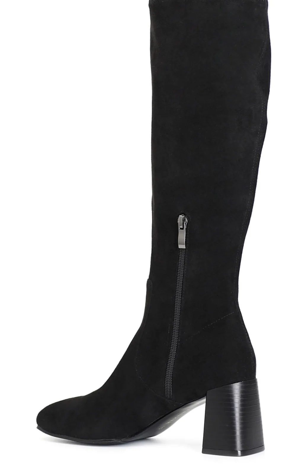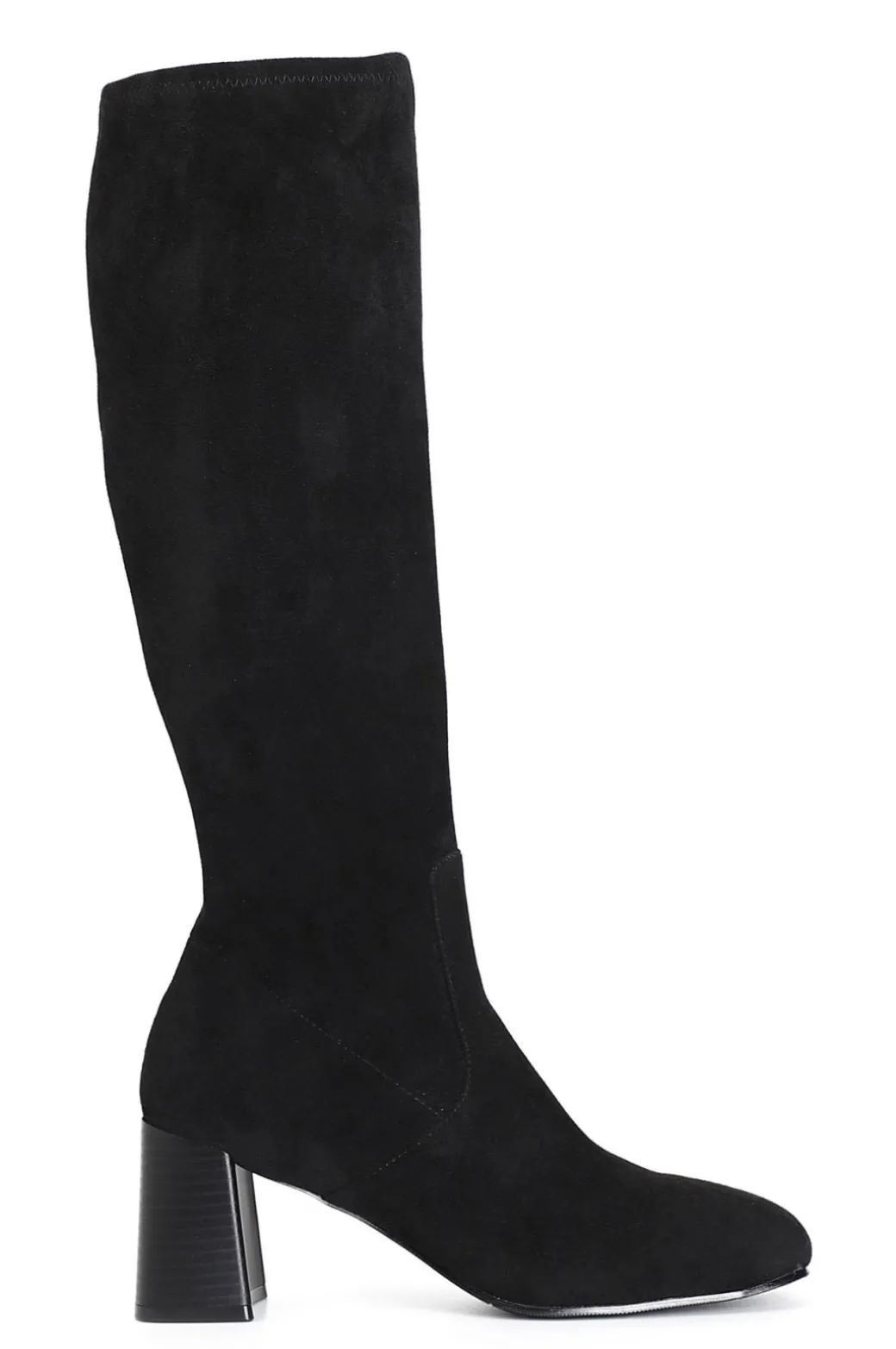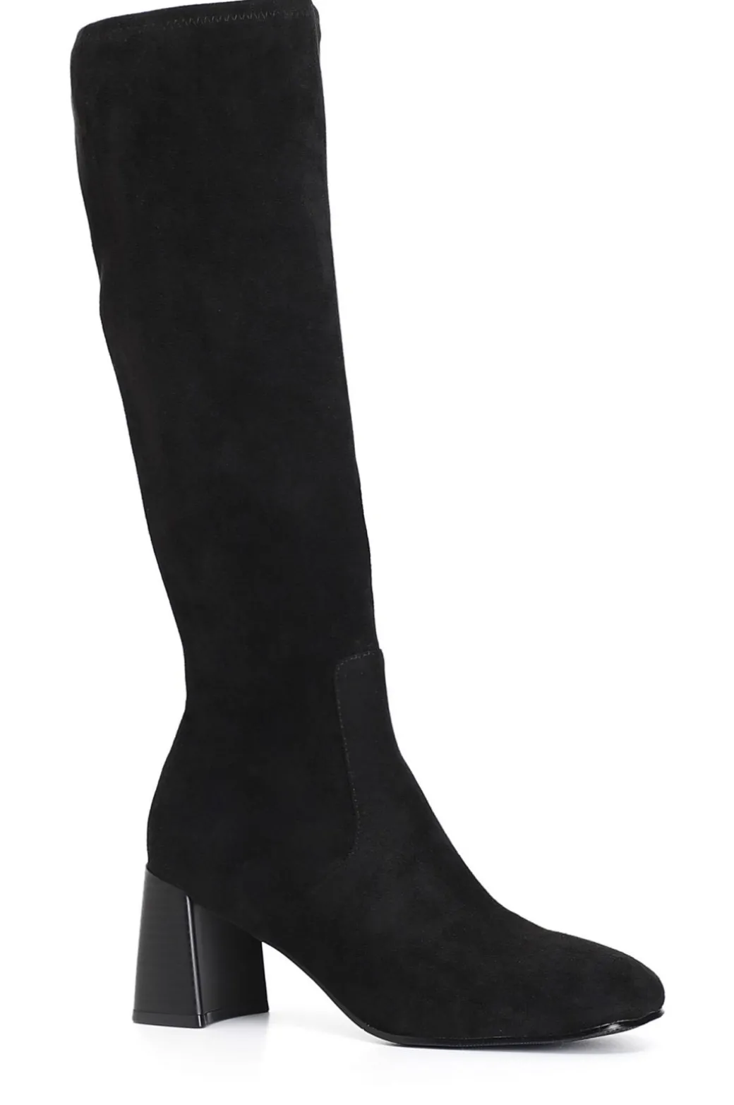 Stivale in microfibra con gambale elasticizzato. cerniera nella parte interna. calzatura comoda dallo stile innovativo e raffinato oltre che molto femminile. la punta e il tacco da 65 mm sono squadrati. il soletto è in pelle.