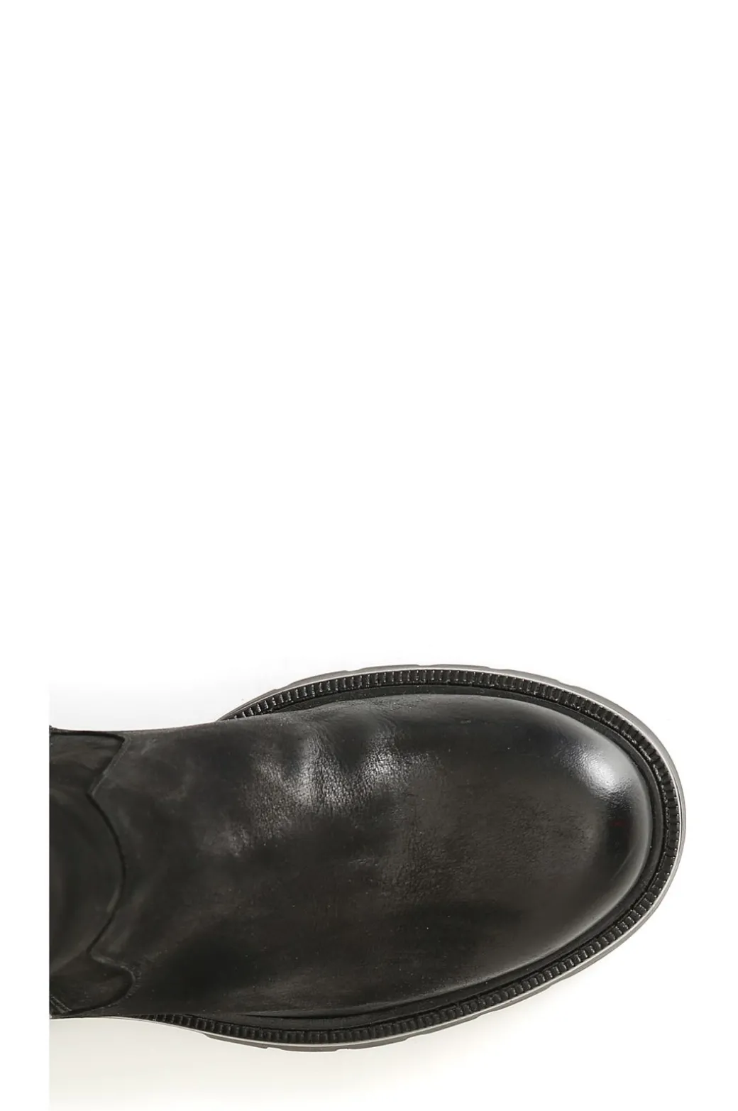 Stivale in pelle con maxi zip ornamentale.cerniera nella parte interna della calzatura. il soletto è in pelle. modello versatile e dinamico ideale per completare moltissimi outfit.