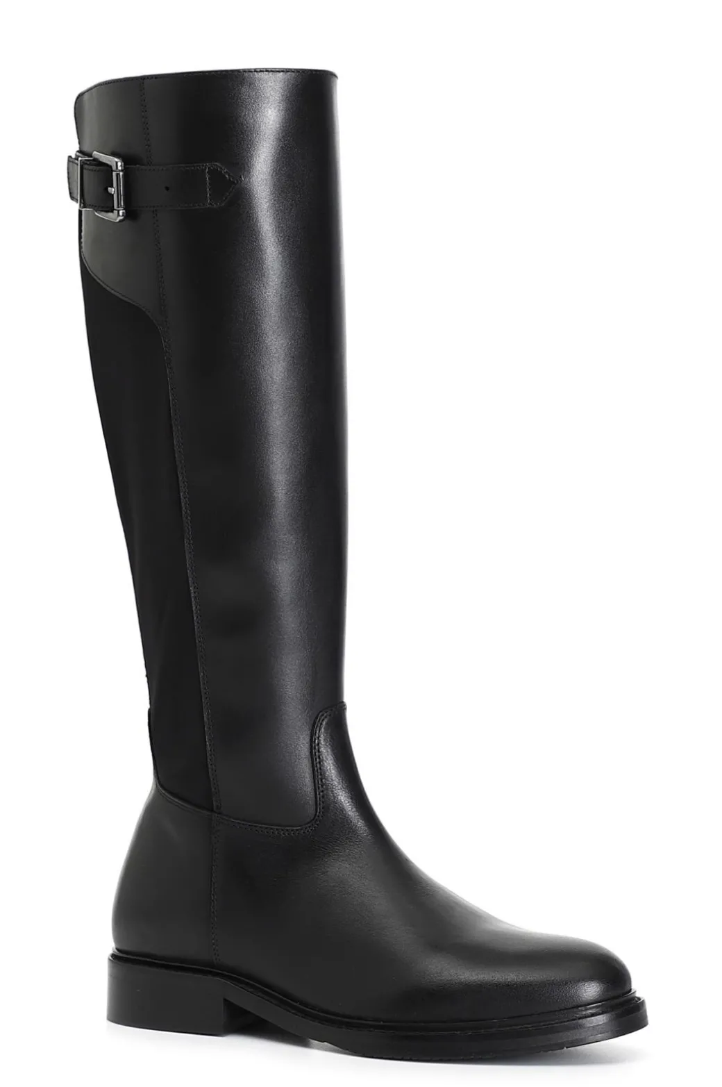 Stivale da donna in pelle e lycra stretch con fibbia a decoro. il tacco è alto 30mm e il soletto è in pelle.