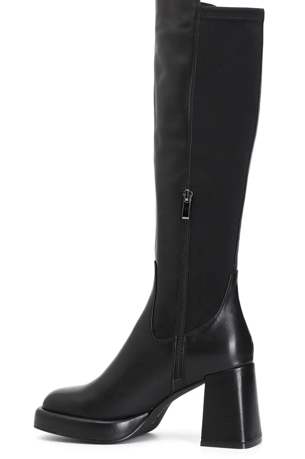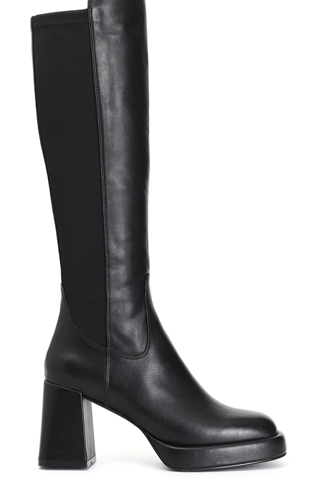 Stivale in pelle e stretch con tacco 80mm e plateau 20mm. il soletto è in pelle. comodità ed eleganza allo stesso tempo ed un carattere unico adatto ad ogni outfit.
