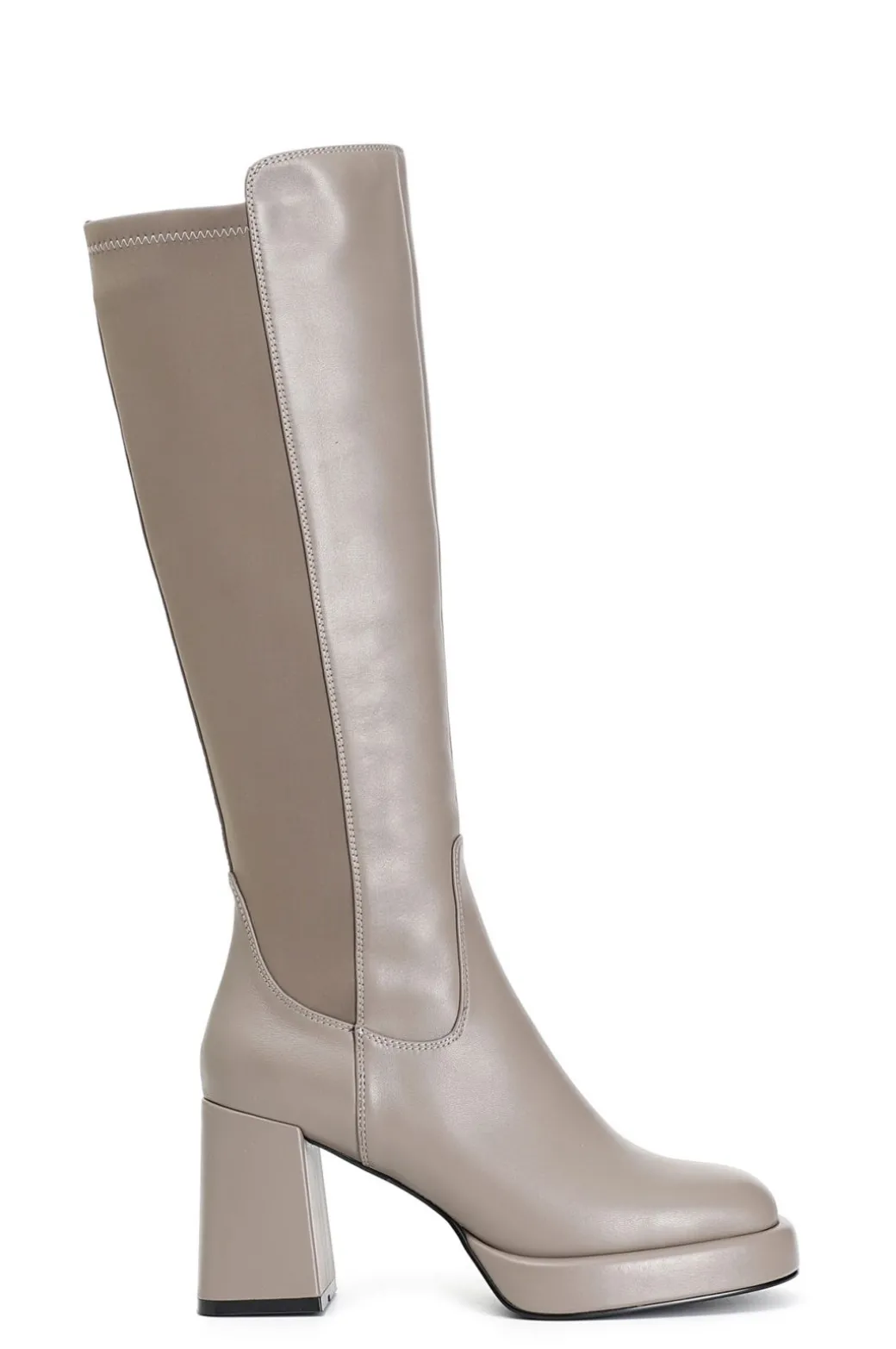 Stivale in pelle e stretch con tacco 80mm e plateau 20mm. il soletto è in pelle. comodità ed eleganza allo stesso tempo ed un carattere unico adatto ad ogni outfit.