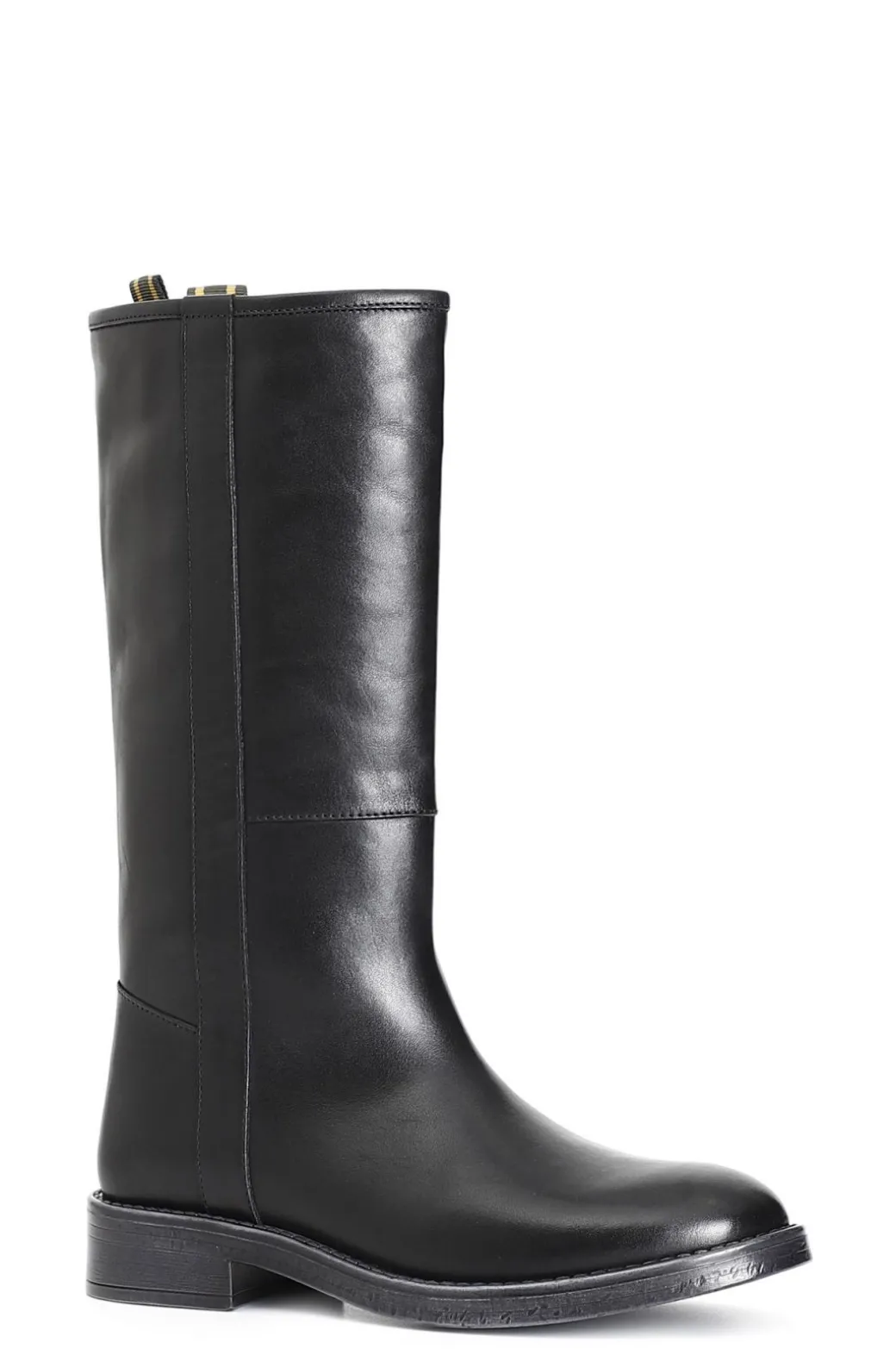 Stivale modello cavaliere in pelle dalla forma arrotondata. tacco alto 33 mm. il soletto è in pelle.