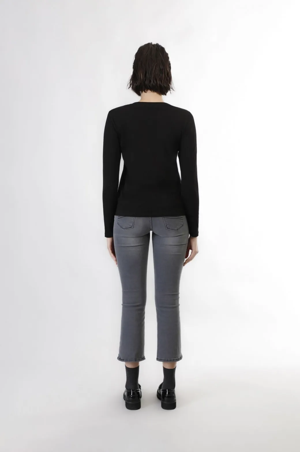 T-shirt a manica corta lunga in cotone elasticizzato con stampa e ricamo riproducono il nostro slogan “be noir”.