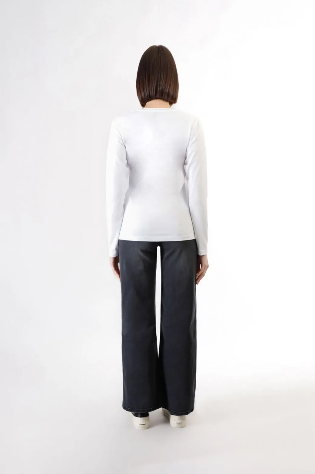 T-shirt a manica lunga e scollatura rotonda realizzata in cotone elasticizzato. logo cafènoir tridimensionale in strass.