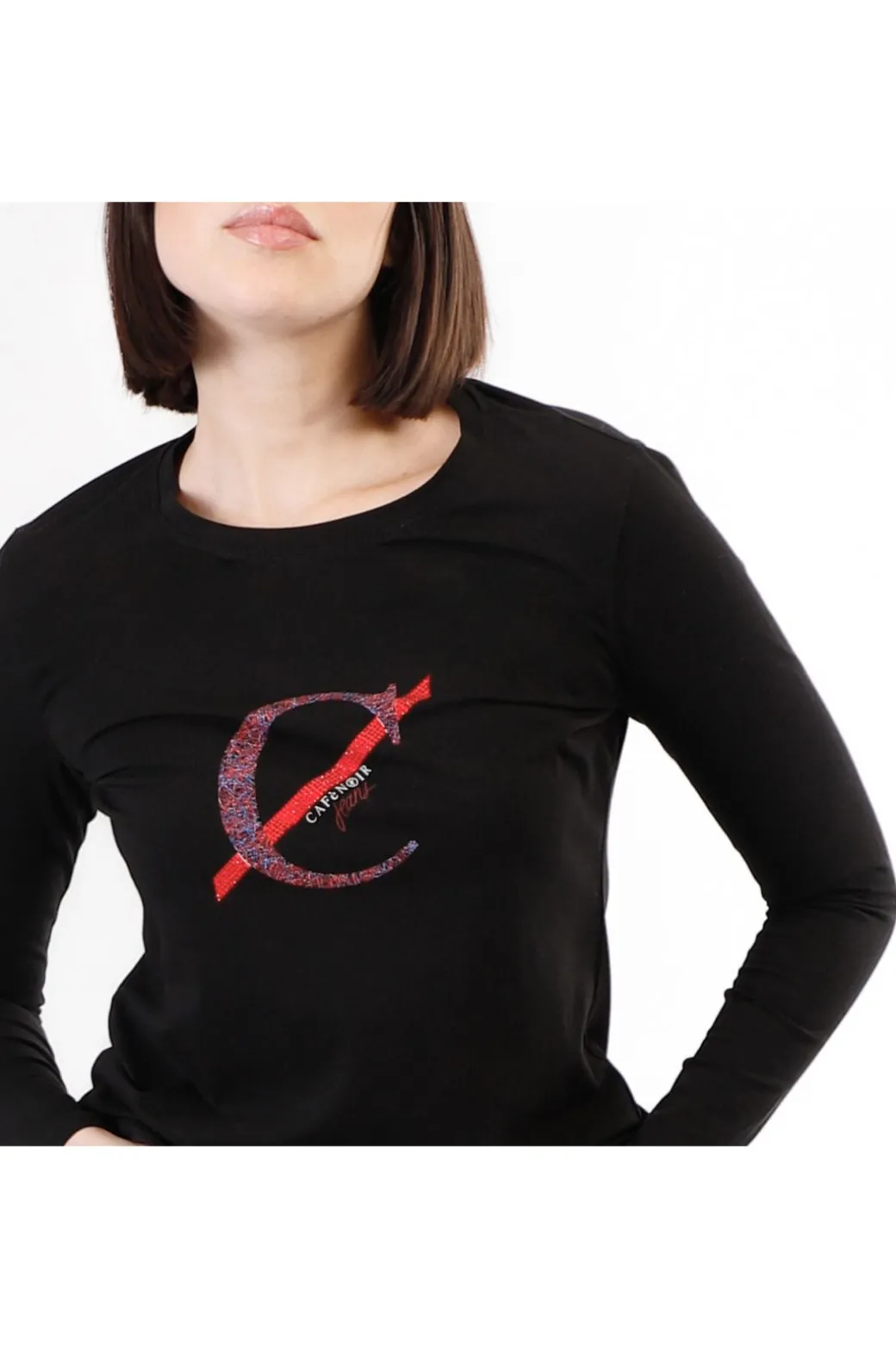 T-shirt a manica lunga realizzata in cotone elasticizzato con stampa multitecnica che riproduce il nostro logo monoframma cafènoir.