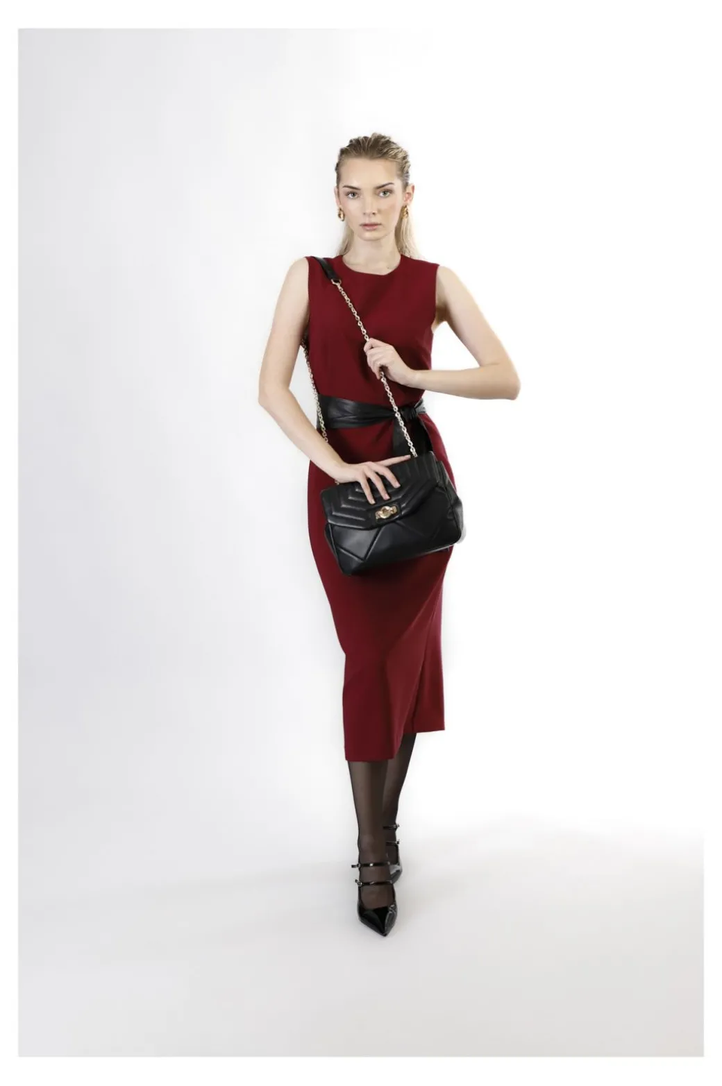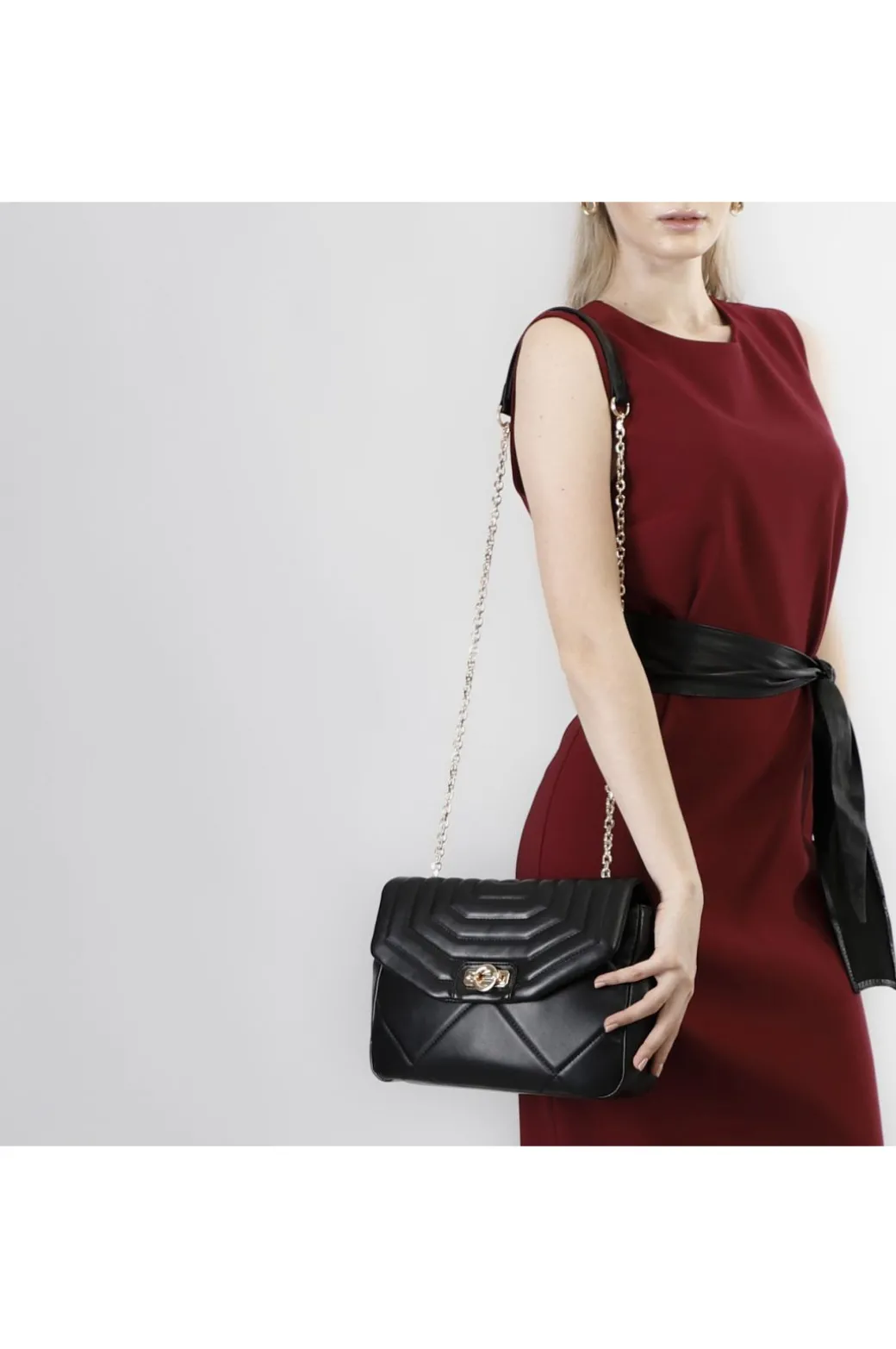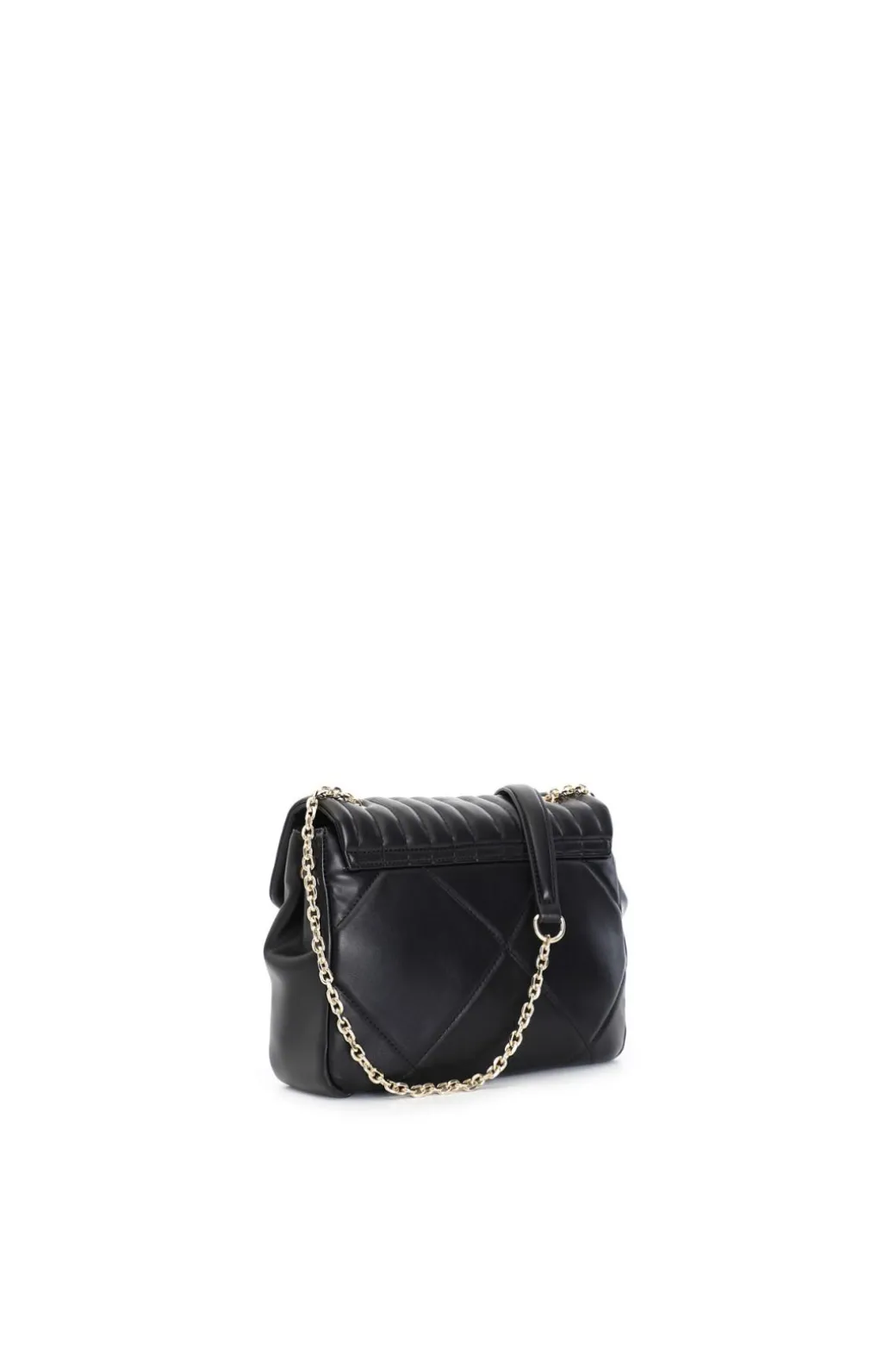 Tracolla grande trapuntata con motivo a rombi e pattina trapuntata con motivo a righe. chiusura in metallo personalizzata. tracollina in catena.