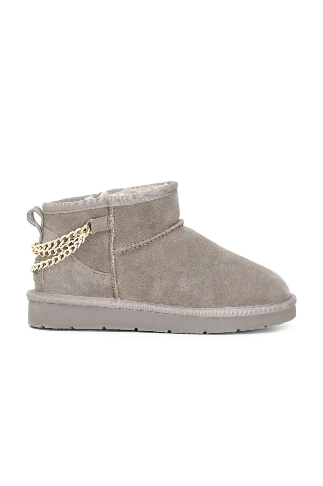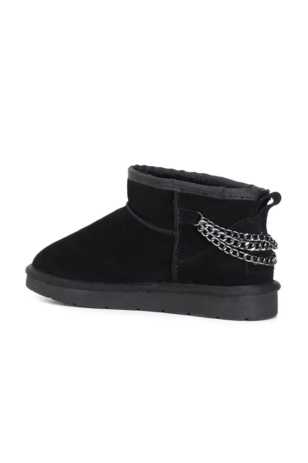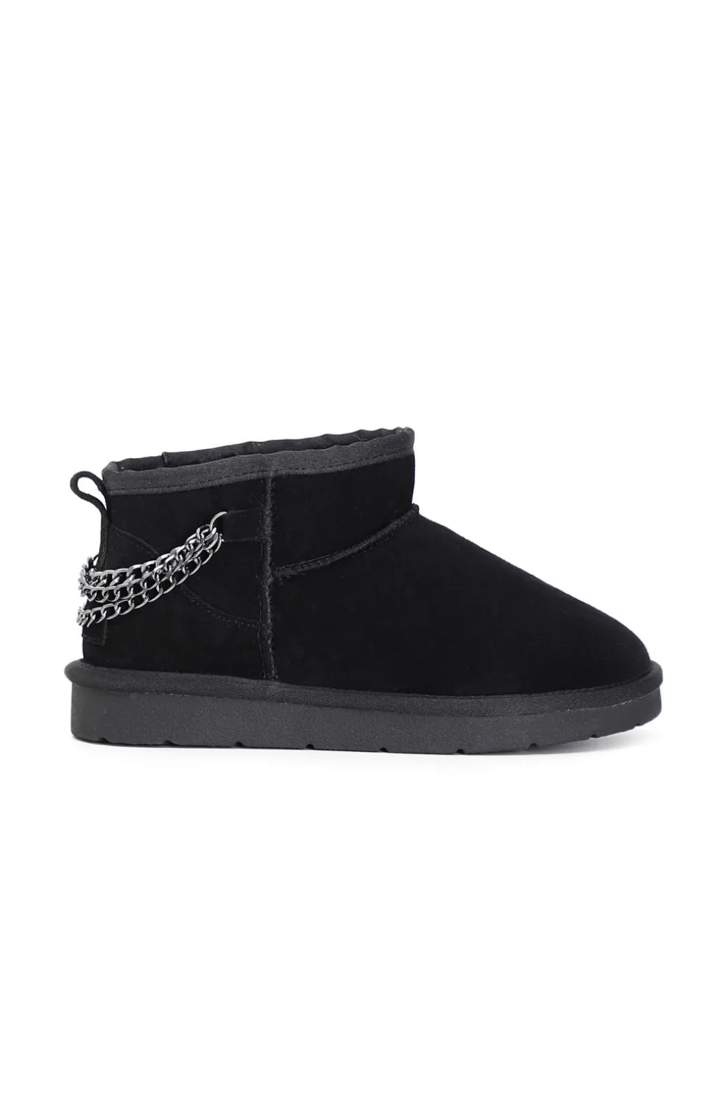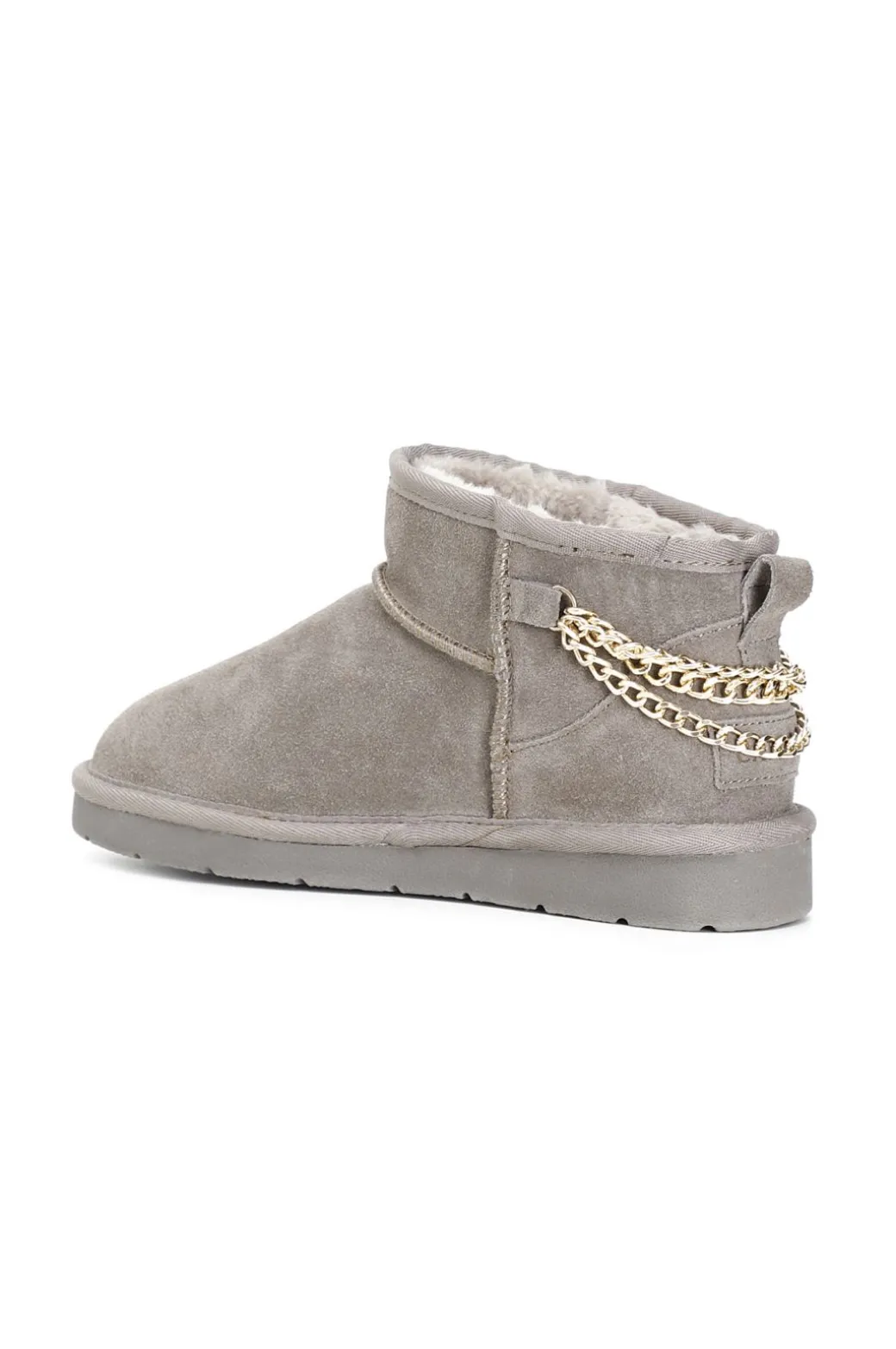 Tronchetti bassi in pelle scamosciata con catene decorative ed interno in ecopelliccia