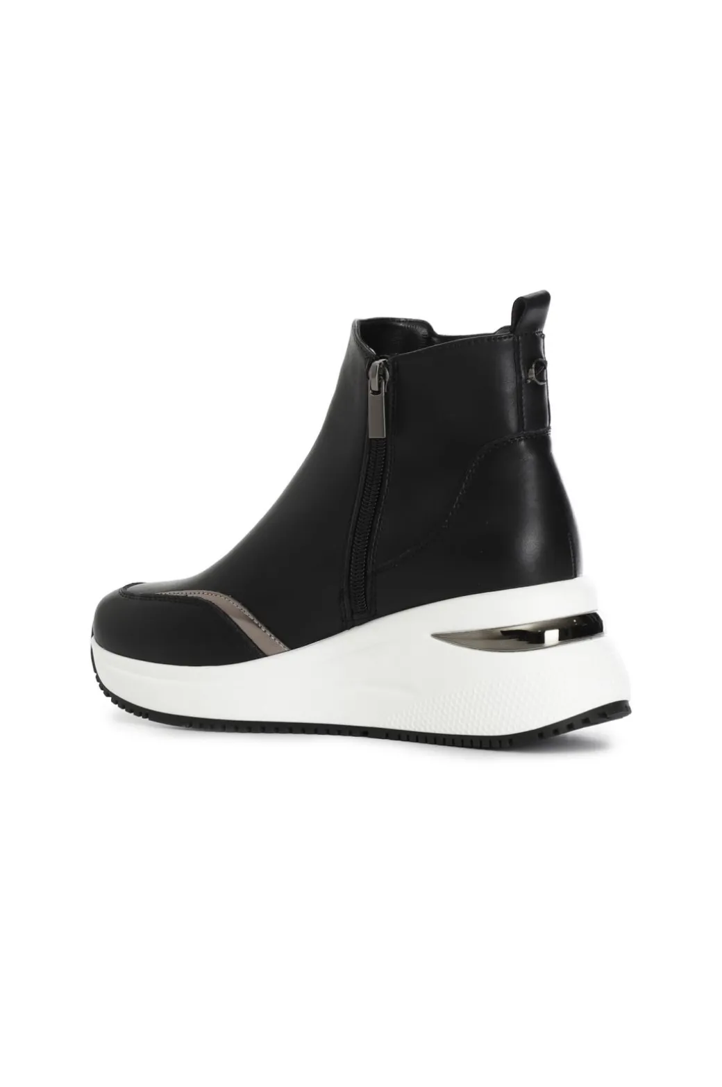 Tronchetto da donna in pelle rivestita con riporti nylon su elastici. fussbett interno.
