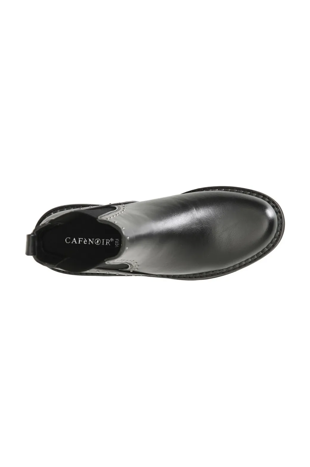 Tronchetto da donna in similpelle con elastici sulla parte laterale del gambale per agevolare la calzata. il tutto arricchito da microborchie cromate. il soletto è in pelle.