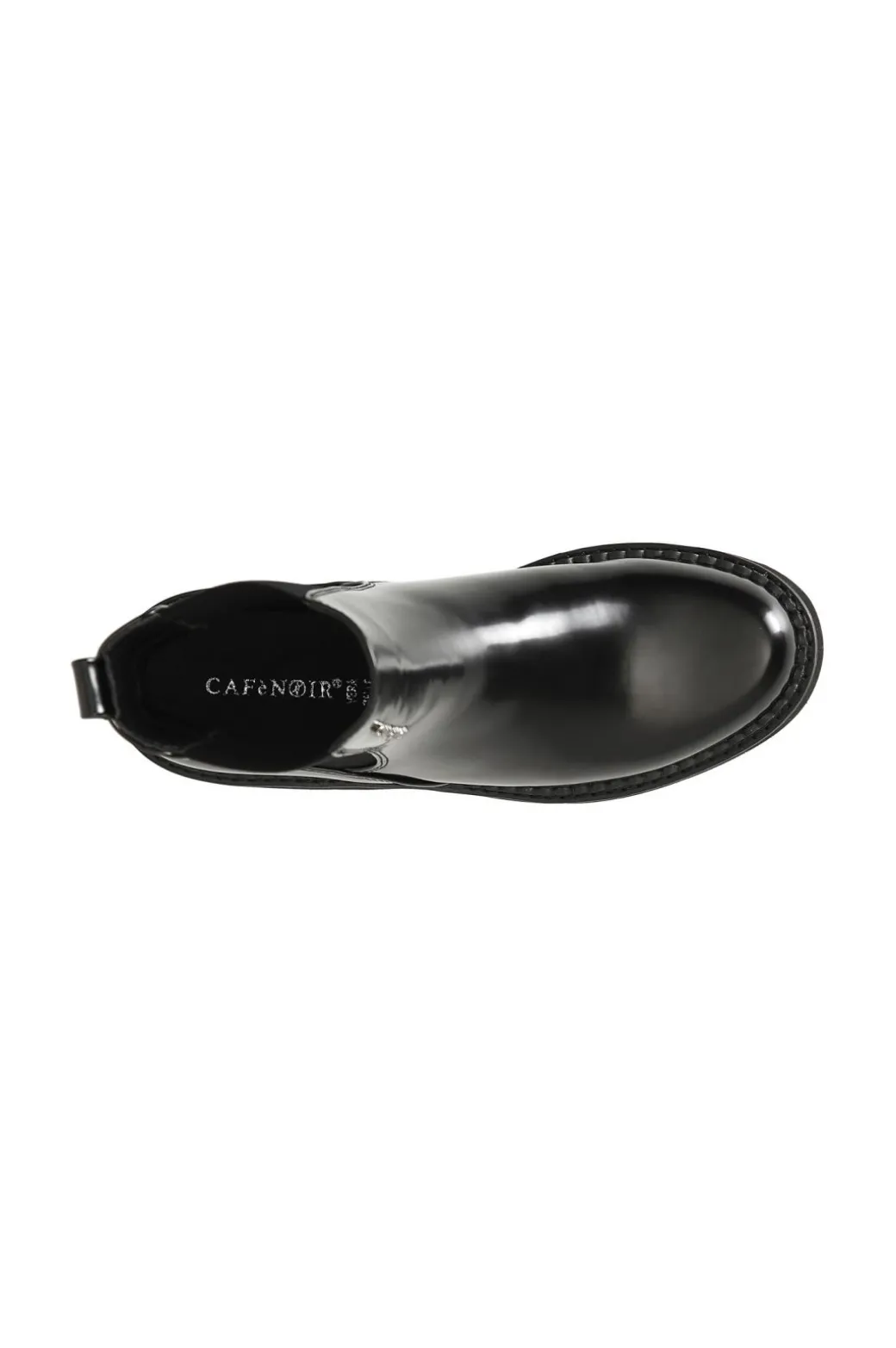 Tronchetto con elastico laterale e accessorio lettering cafènoir. il soletto è in pelle.