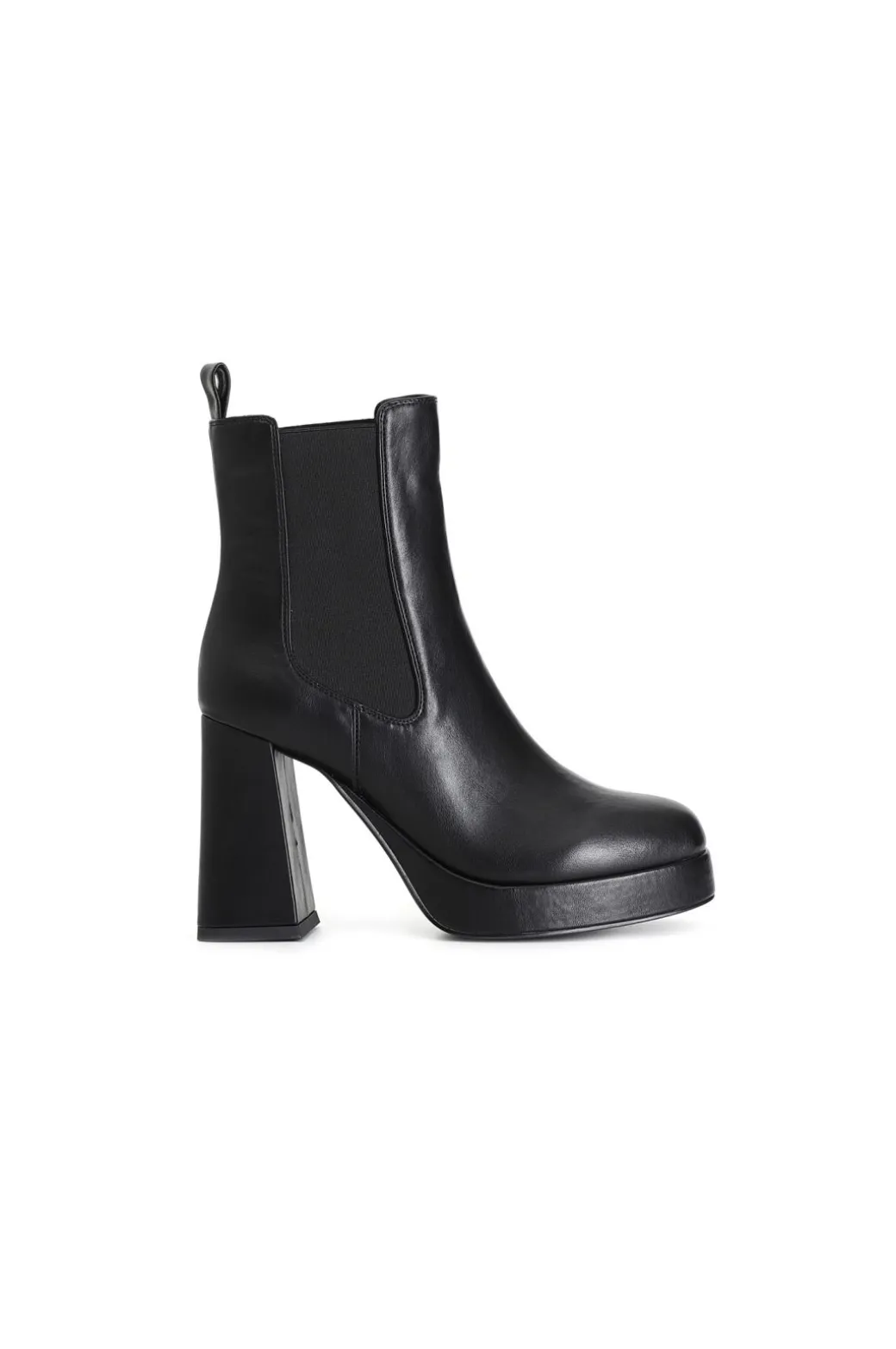Tronchetto da donna in similpelle con elastici laterali per agevolare la calzata. plateau di 22 mm e tacco alto 100 mm. forma stondata. il soletto è in pelle. il tutto dona equilibrio tra altezza bellezza e comodità.