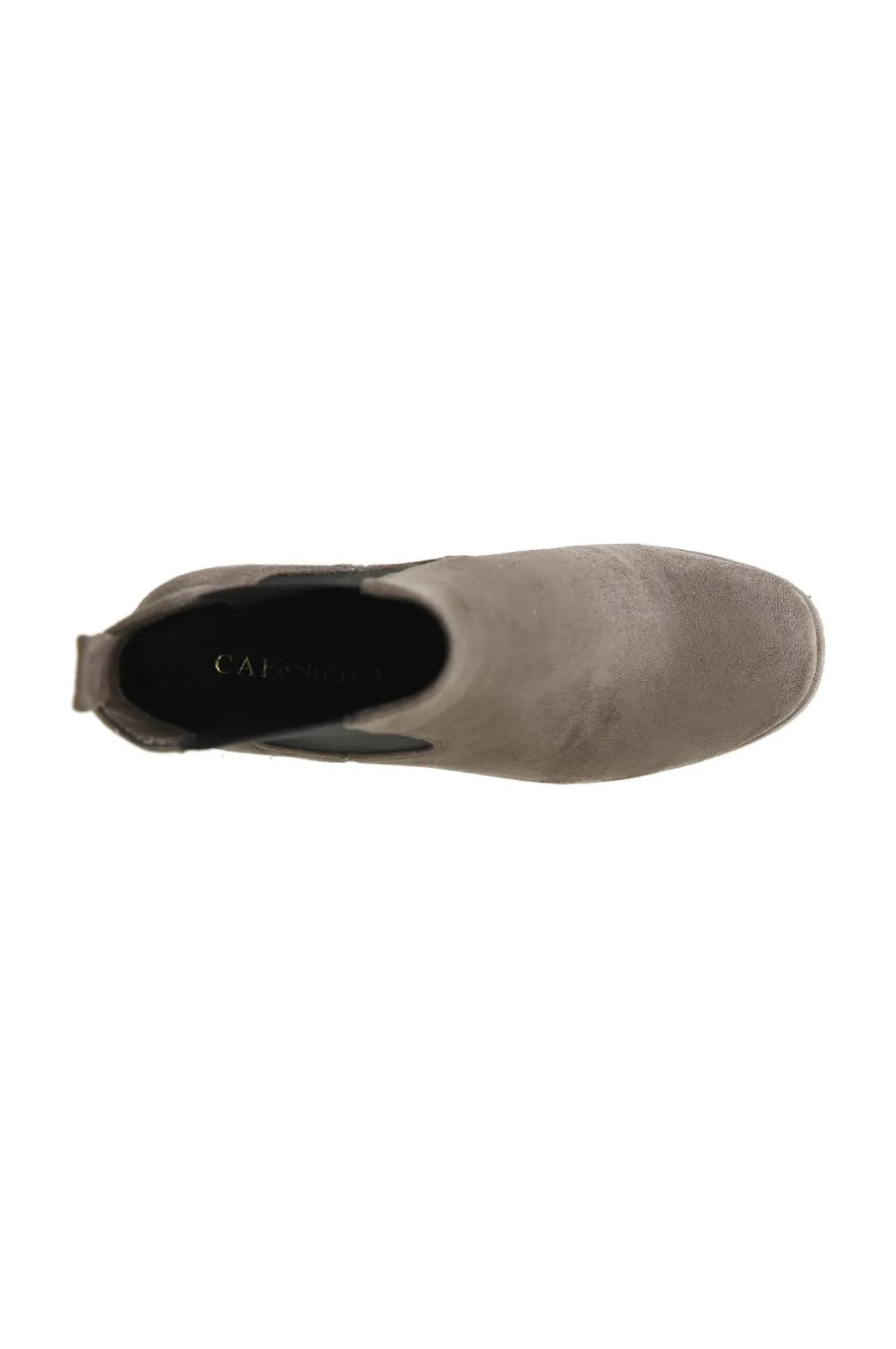 Tronchetto da donna in microfibra con elastici laterali per agevolare la calzata. plateau di 22 mm e tacco alto 100 mm. forma stondata. il soletto è in pelle. il tutto dona equilibrio tra altezza bellezza e comodità.
