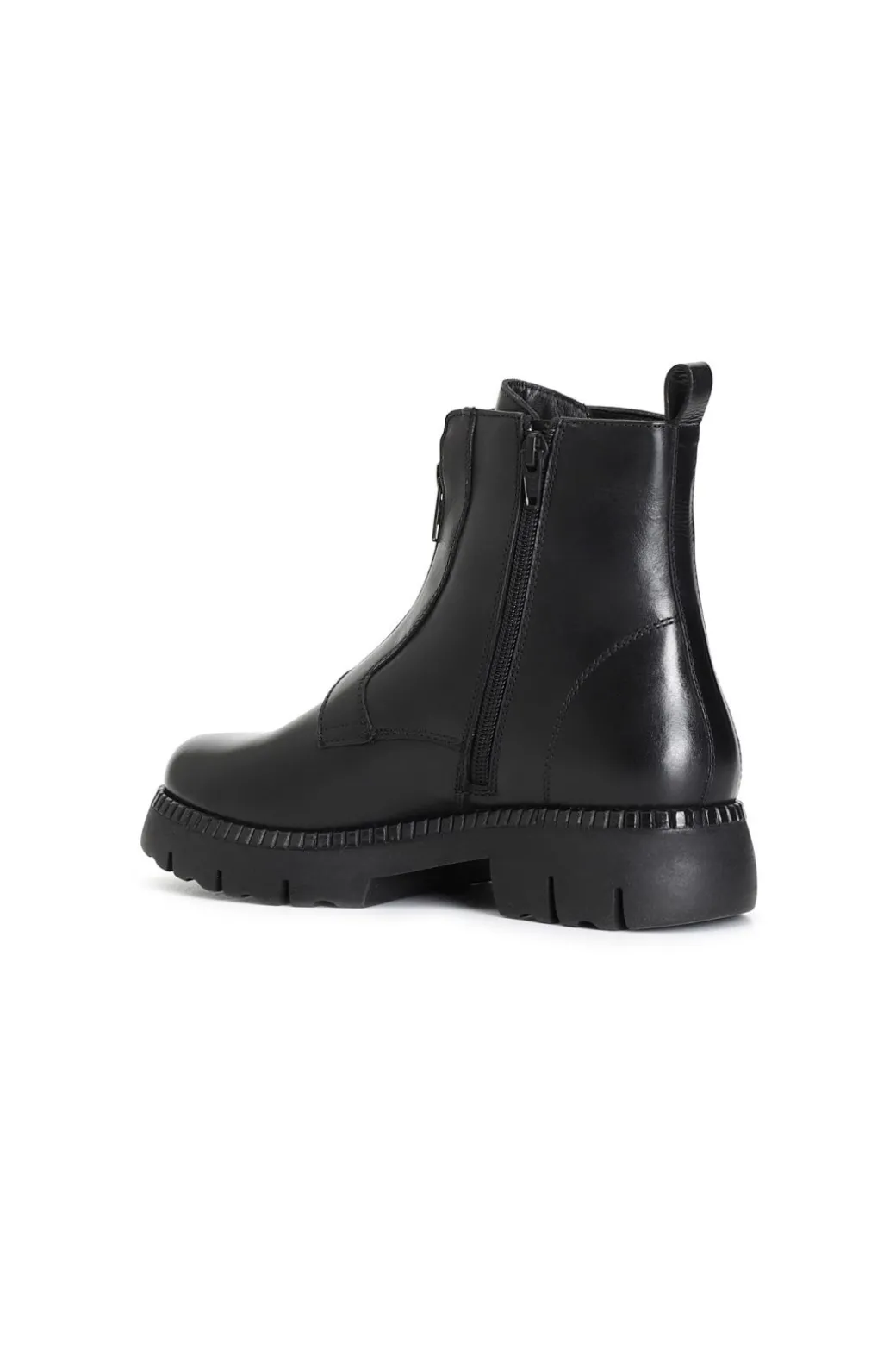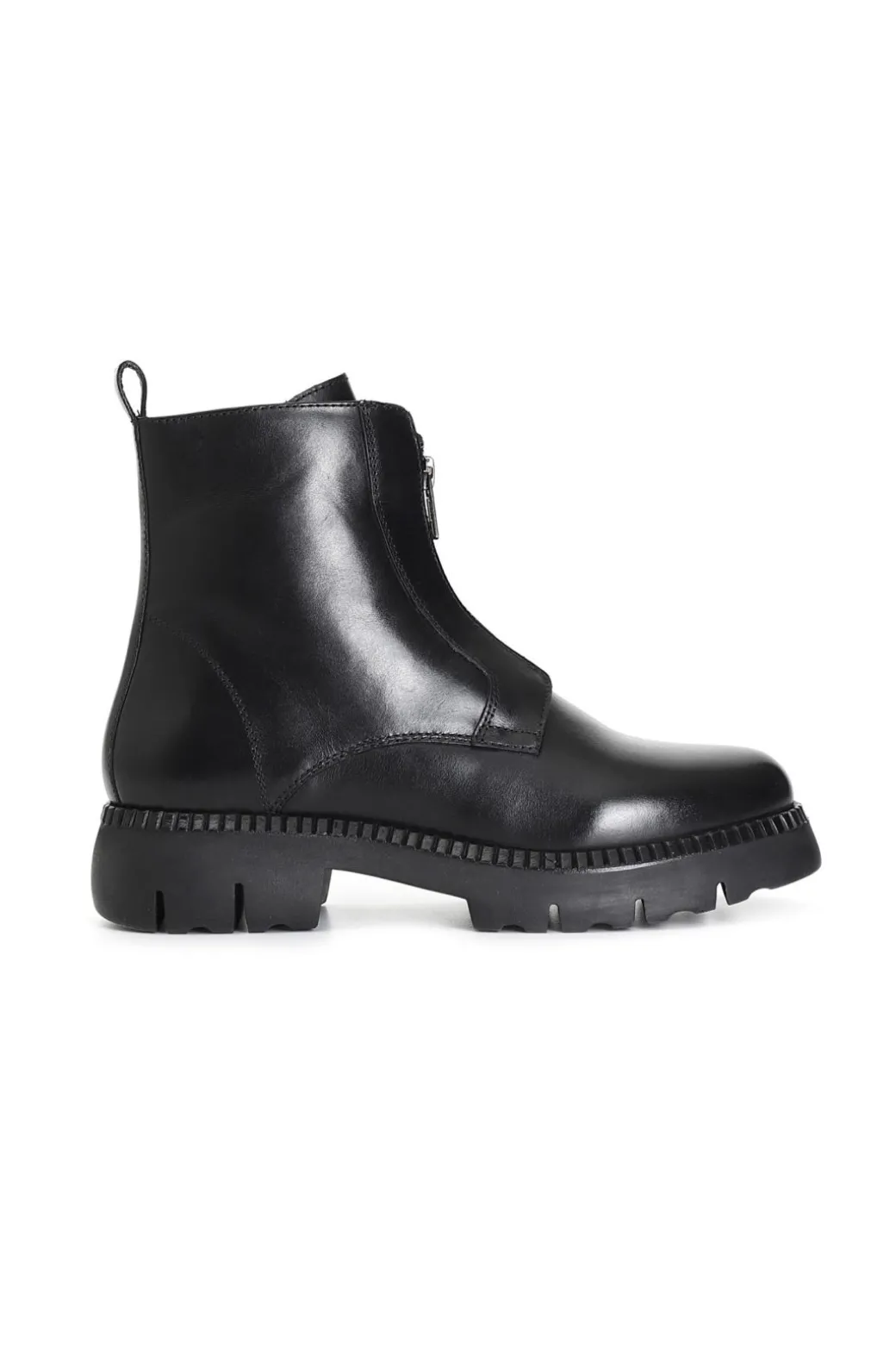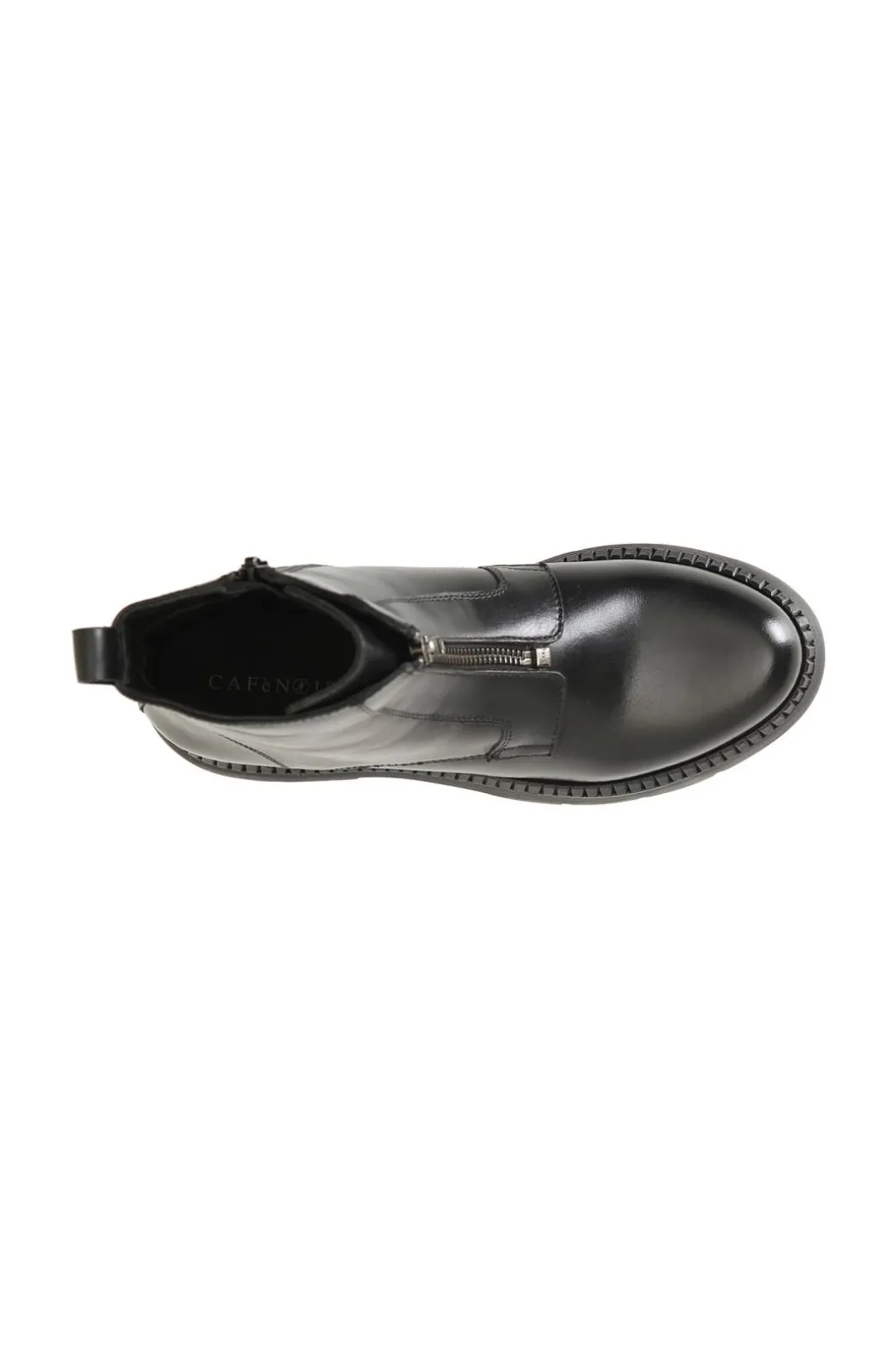 Tronchetto da donna in pelle con cerniera interna e zip ornamentale sul davanti. il soletto è in pelle. plateau alto 25 mm. tacco da 40 mm.