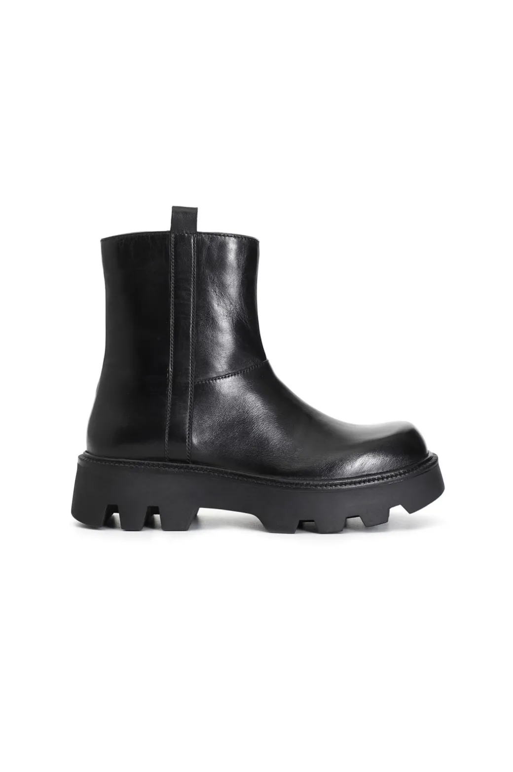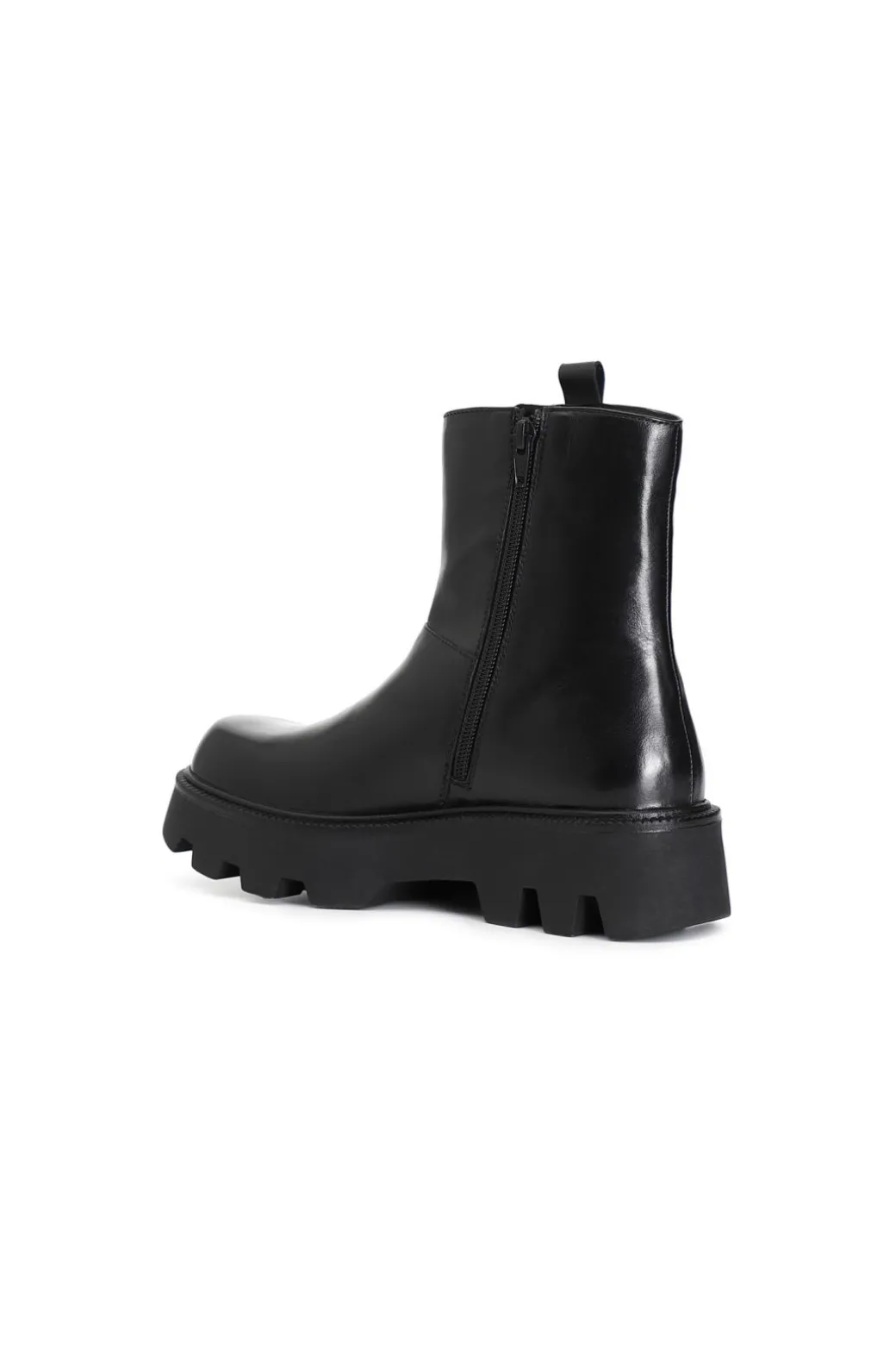 Tronchetto monocolore da donna in pelle con cerniera laterale. soletto in pelle e suola carro armato.