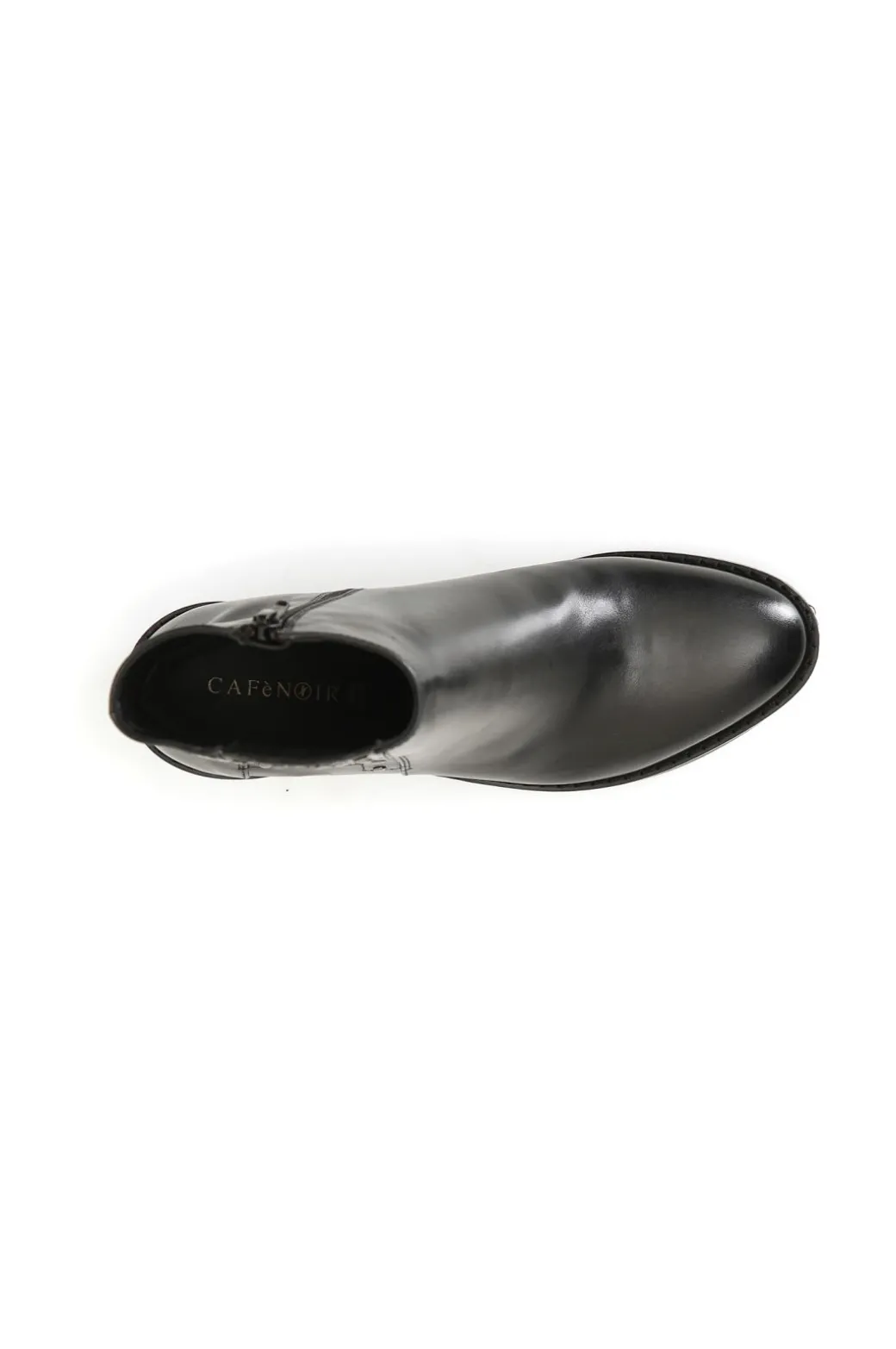 Tronchetto da donna in pelle con elastici arricchito da borchie. altezza tacco 50mm. il soletto è in pelle.