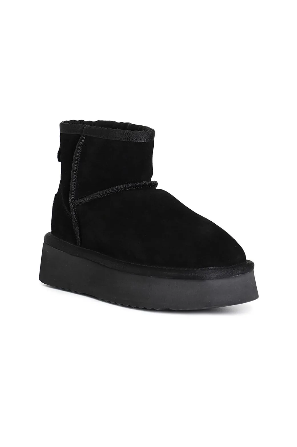 Tronchetti in pelle scamosciata con interno in pelliccia sintetica. suola alta 40 mm. logo cafènoir in metallo posizionato sul retro della calzatura.