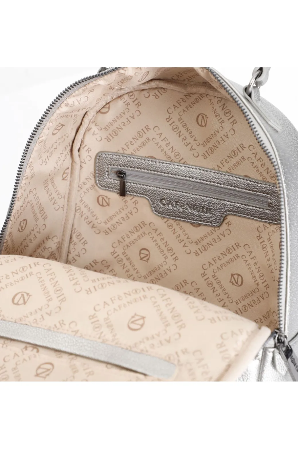 Zaino trapuntato con logo cafènoir in metallo. doppia apertura con cerniera. spallacci regolabili.