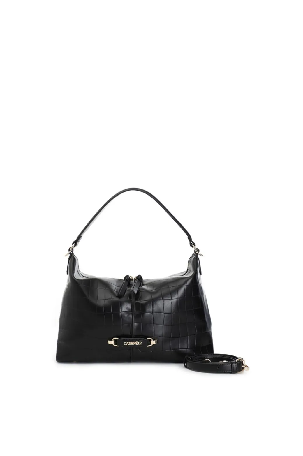 Sacca in materiale sintetico stampa cocco. applicazione di tag con lettering in metallo. chiusura con cerniera. tasca interna con zip. tracolla removibile.