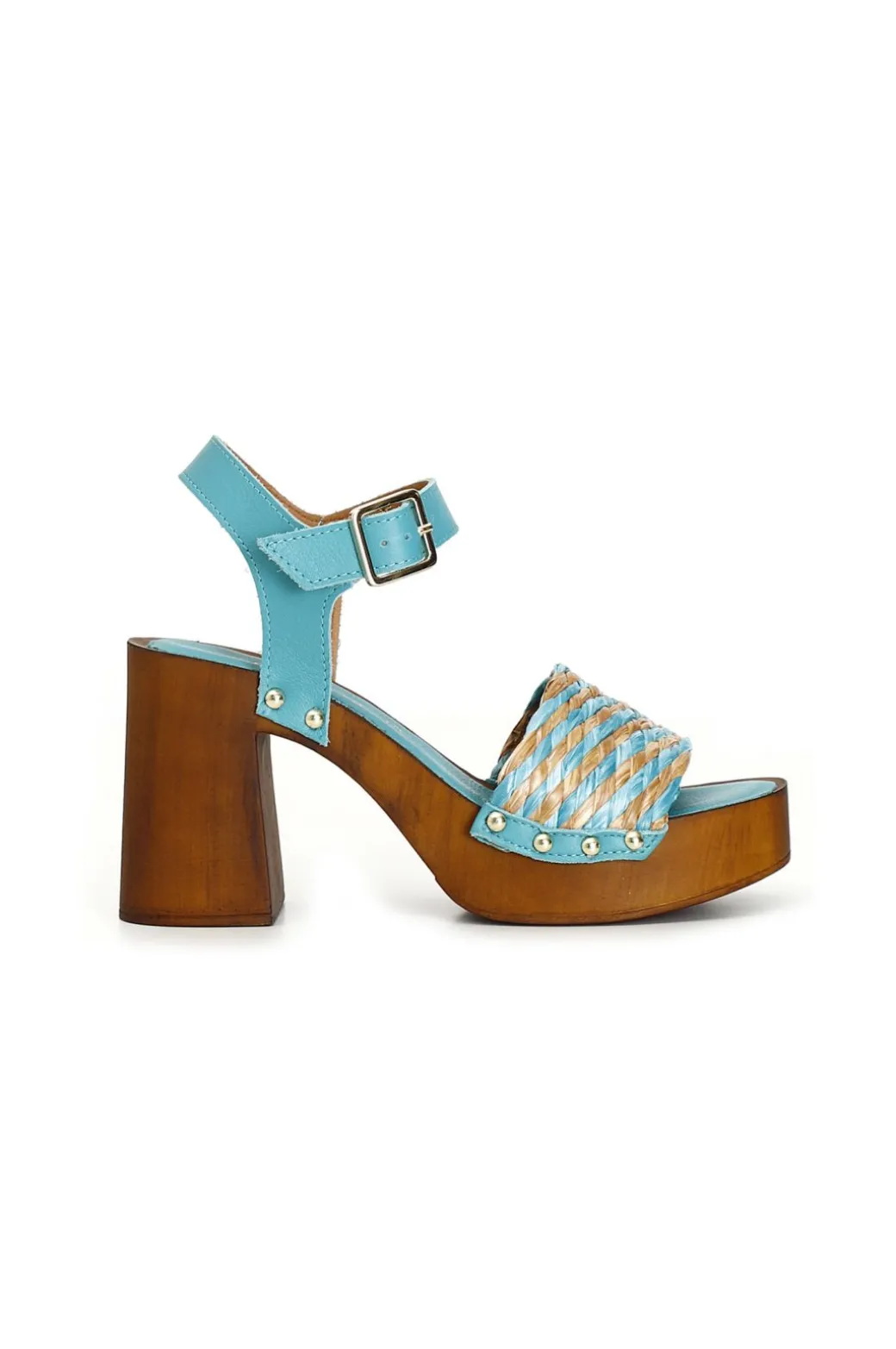 Be the first to review “zoccoli con tacco in legno e fascia decorativa in rafia intrecciata bicolore multi turchese” Annulla risposta